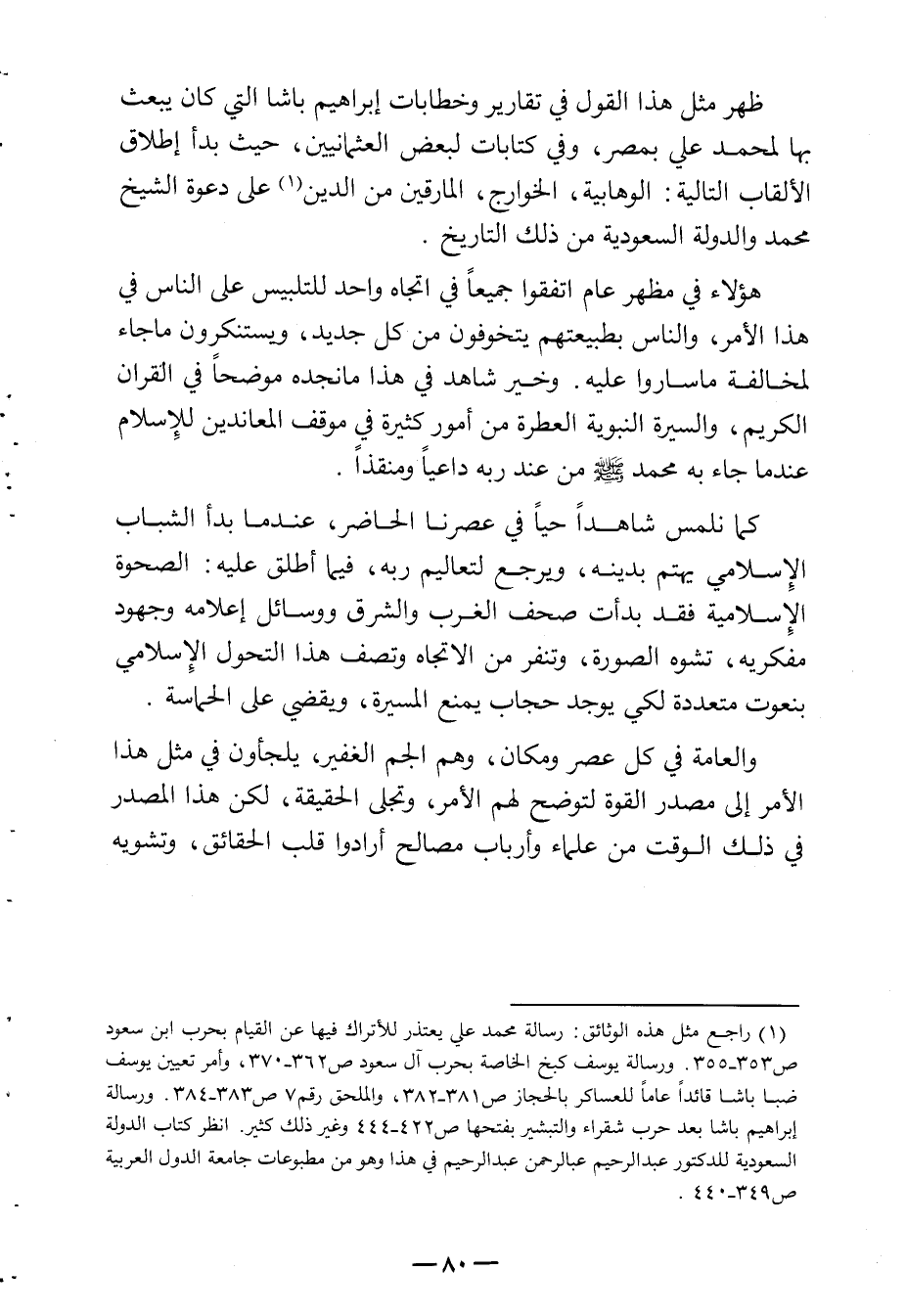 (¬1) - راجع مثل هذه الوثائق: رسالة محمد على يعتذر للأتراك فيها عن القيام بحرب ابن سعود ص 353 - 355 ورسالة يوسف كبخ الخاصة بحرب آل سعود ص 362 - 370 وأمر تعيين يوسف ضبا باشا قائداً عاماً للعساكر بالحجاز ص 381 - 382 والملحق رقم 7 ص 383 - 384. ورسالة إبراهيم باشا بعد حرب شقراء والتبشير بفتحها ص 422 - 444 وغير ذلك كثير. انظر كتاب الدولة السعودية للدكتور عبد الرحيم عبد الرحمن عبد الرحيم في هذا وهو من مطبوعات جامعة الدول العربية ص 349 - 440.