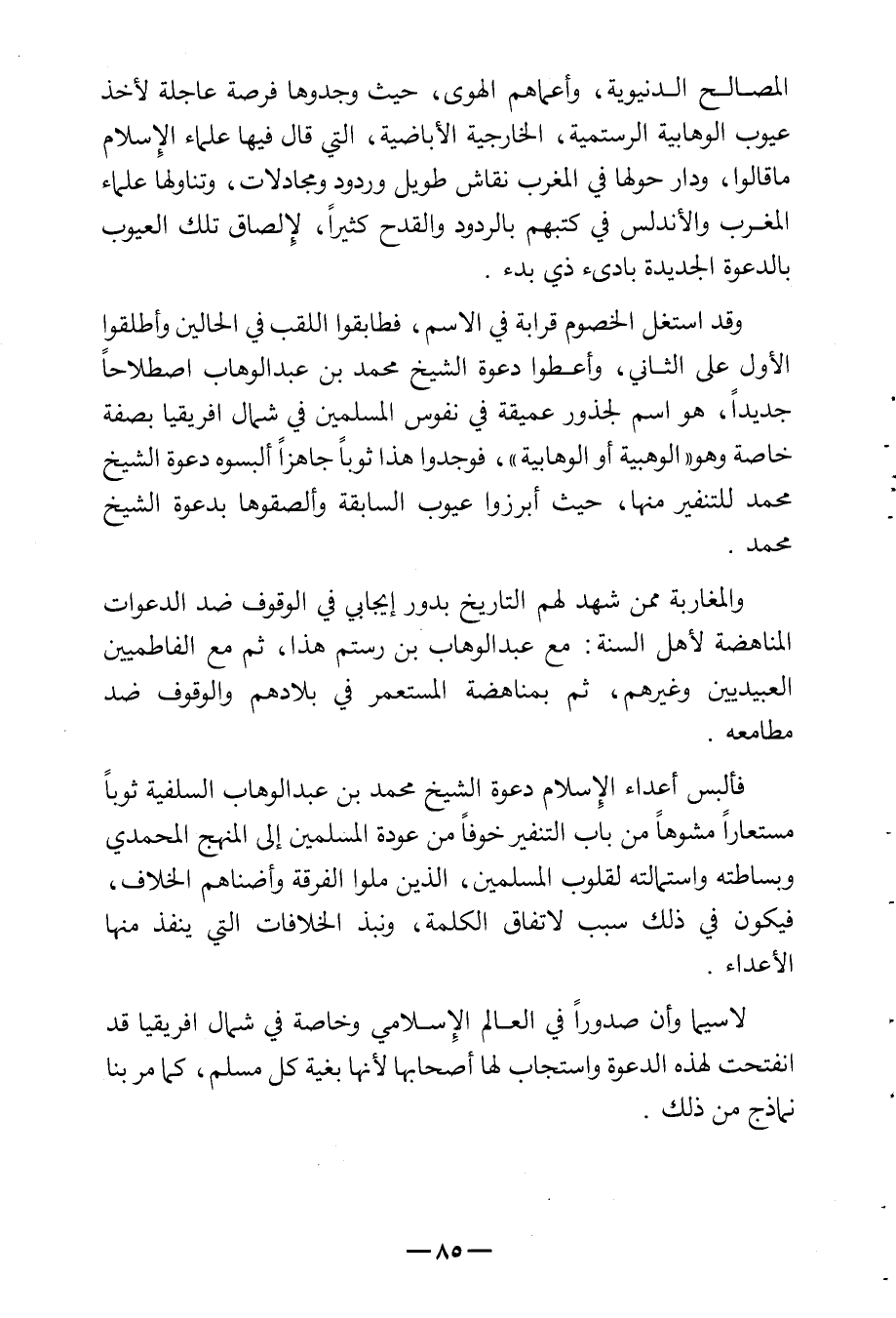 المصالح الدنيوية وأعماهم الهوى حيث وجدوها فرصة عاجله لأخذ عيوب الوهابية الرستمية , الخارجية الأباضية التي قال فيها علماء الإسلام ما قالوا ودار حولها في المغرب نقاش طويل وردود ومجادلات وتناولها علماء المغرب والأندلس في كتبهم بالردود والقدح كثيراً لإلصاق تلك العيوب بالدعوة الجديدة بادئ ذي بدء.