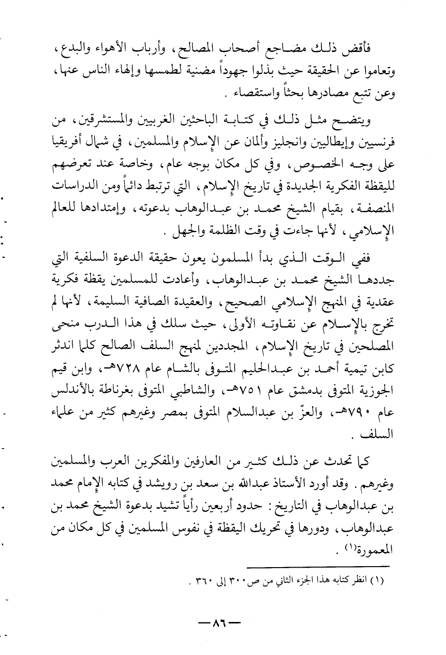 ويتضح مثل ذلك في كتابة الباحثين الغربيين والمستشرقين من فرنسيين وإيطاليين وإنجليز وألمان عن الإسلام والمسلمين في شمال إفريقيا على وجه الخصوص وفي كل مكان بوجه عام وخاصة عند تعرضهم لليقظة الفكرية الجديدة في تاريخ الإسلام التي ترتبط دائماً ومن الدراسات المنصفة بقيام السيخ محمد بن عبد الوهاب بدعوته وامتدادها للعالم الإسلامي لأنها جاءت في وقت الظلمة والجهل.