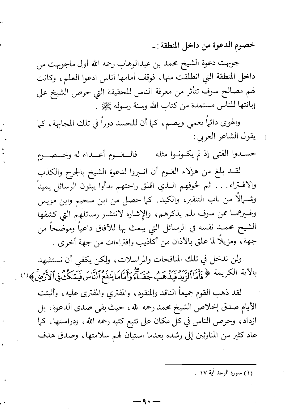 جوبهت دعوة الشيخ محمد بن عبد الوهاب رحمه الله أول ما جوبهت من داخل المنطقة التي انطلقت منها فوقف أمامها أناس ادعوا العلم وكانت لهم مصالح سوف تتأثر من معرفة الناس للحقيقة التي حرص الشيخ على إبانتها للناس مستمدة من كتاب الله وسنة رسوله صلى الله عليه وسلم.