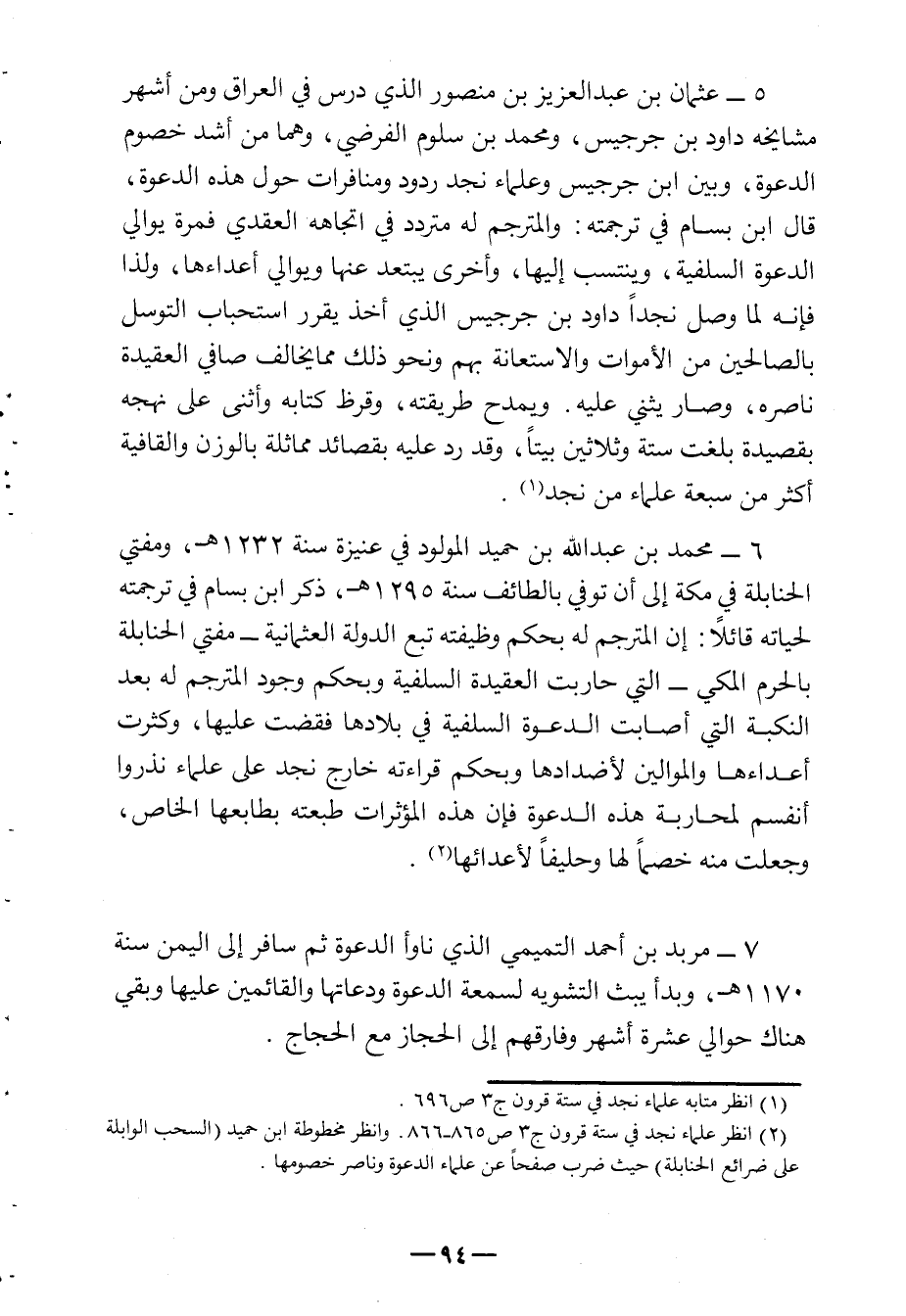 (¬2) - انظر علماء نجد في ستة قرون ج 3 ص 865 - 866 وانظر مخطوطة ابن حميد " السحب الوابلة على ضرائع الحنابلة " حيث ضرب صفحاً عن علماء الدعوة وناصر خصومها.