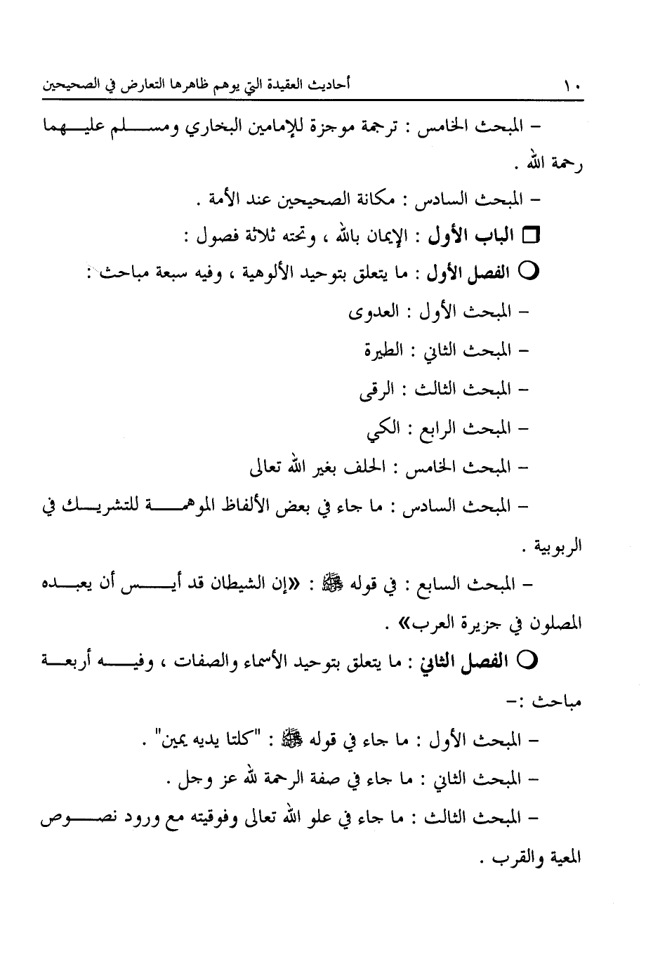 كتاب أحاديث العقيدة التي يوهم ظاهرها التعارض في الصحيحين دراسة وترجيح