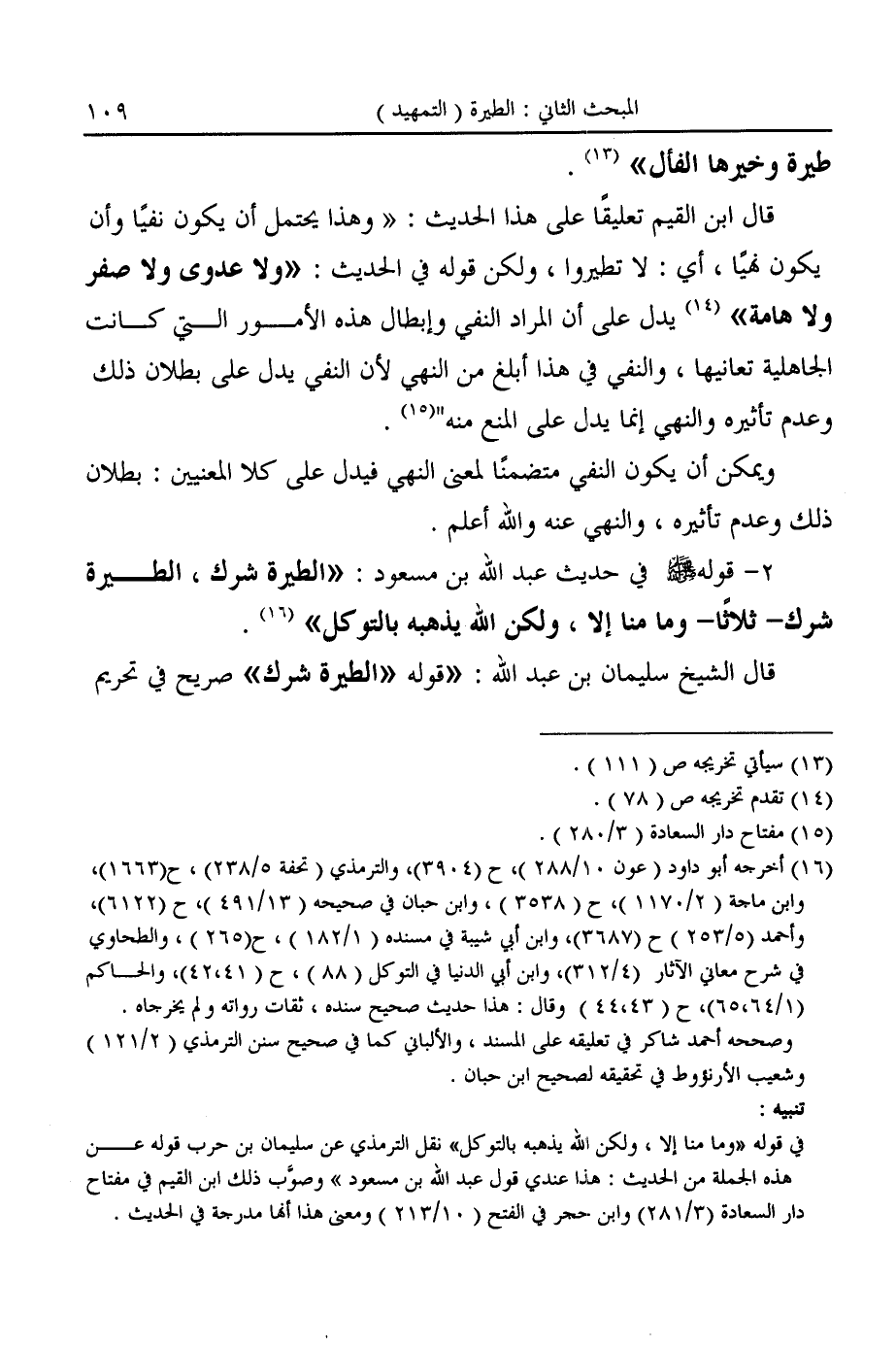 قال الشيخ سليمان إن عبد الله: "قوله "الطيرة شرك" صريح في تحريم
