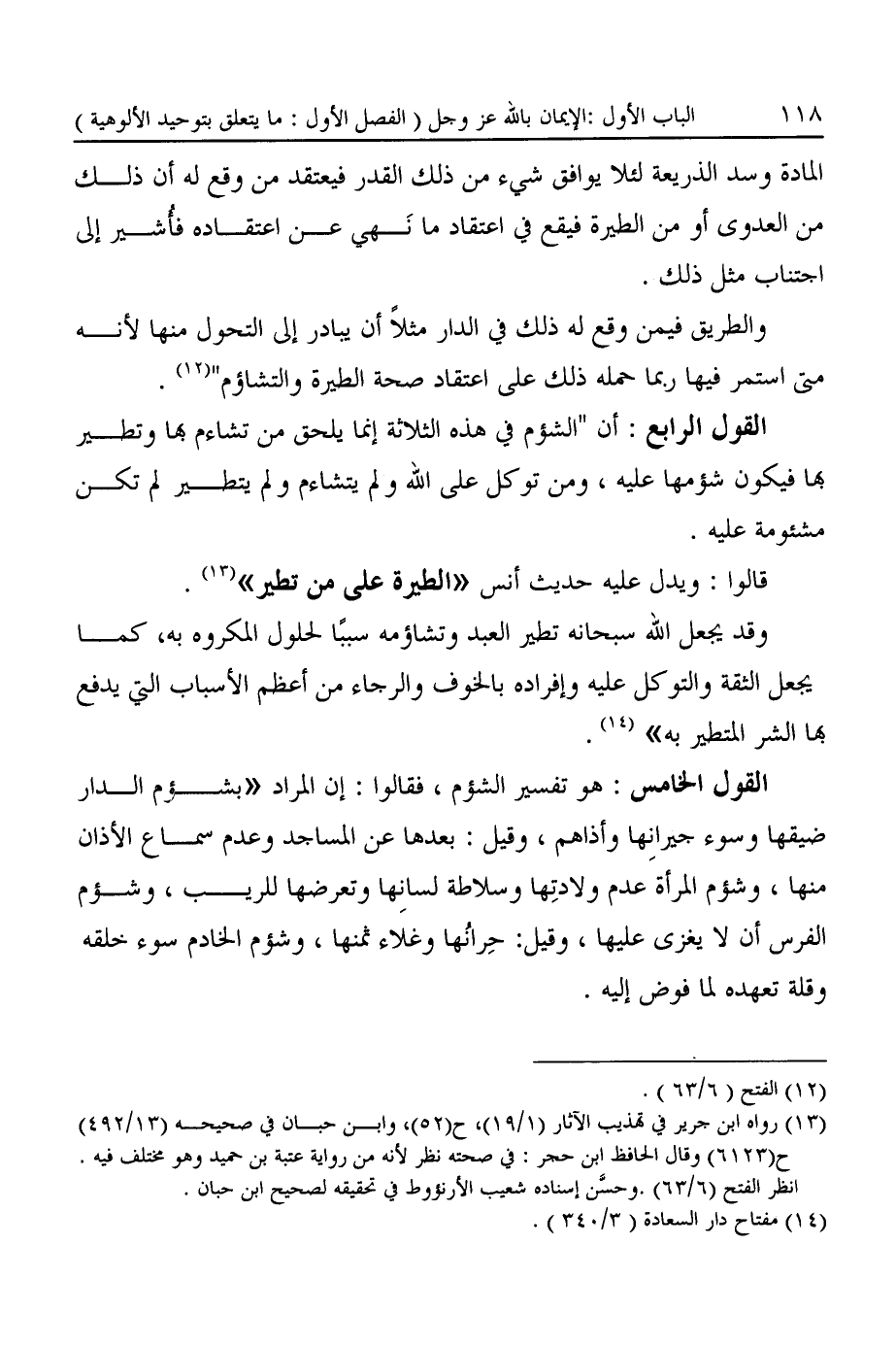 قالوا: ويدل عليه حديث أنس "الطيرة على من تطير" (¬١٣).