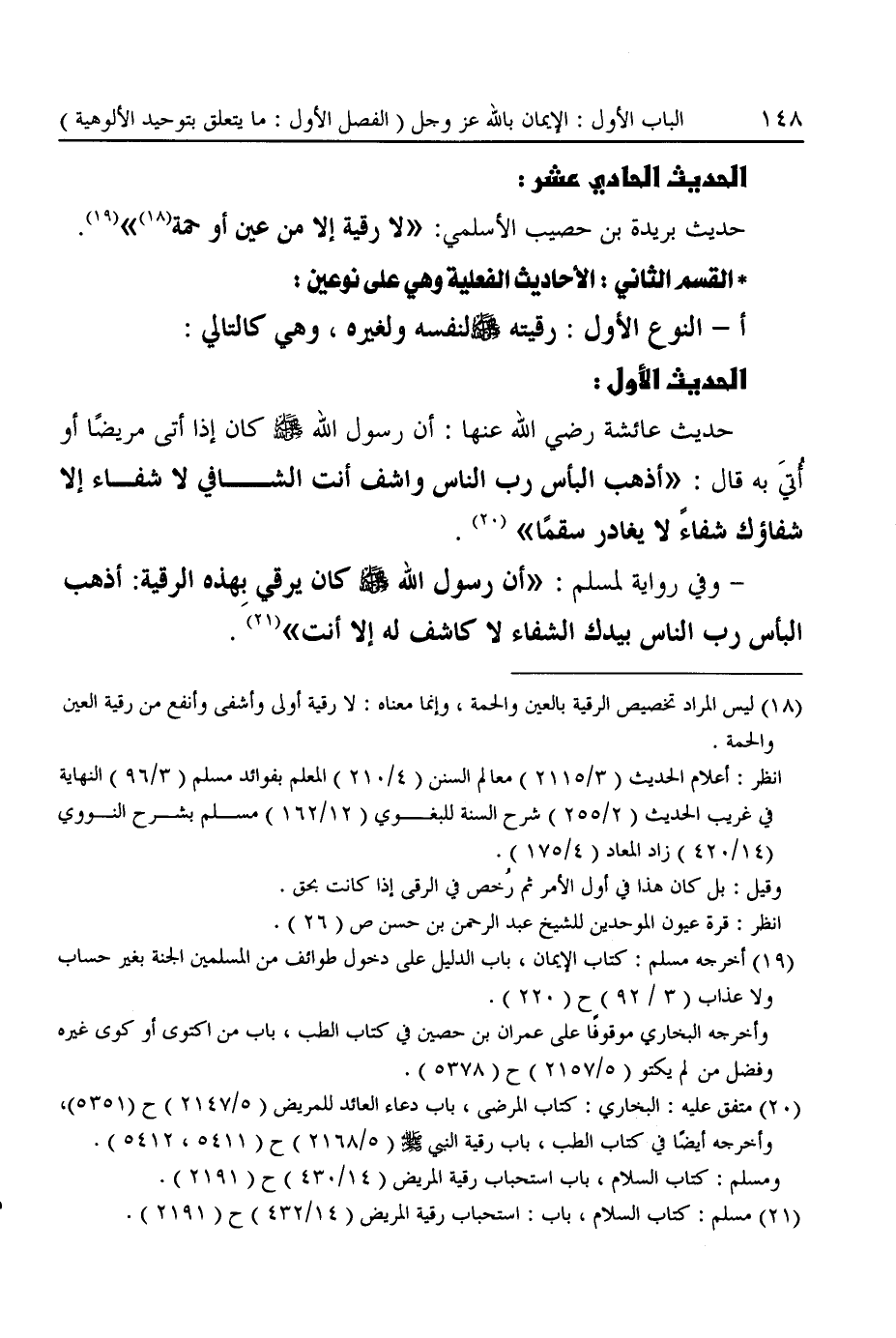 (¬٢١) مسلم: كتاب السلام، باب: استحباب رقية المريض (١٤/ ٤٣٢) ح (٢١٩١).