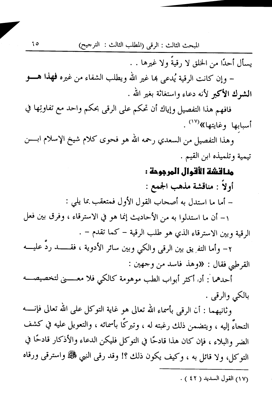 فافهم هذا التفصيل وإياك أن تحكم على الرقى بحكم واحد مع تفاوتِها في أسبابِها وغايتها" (¬١٧).
