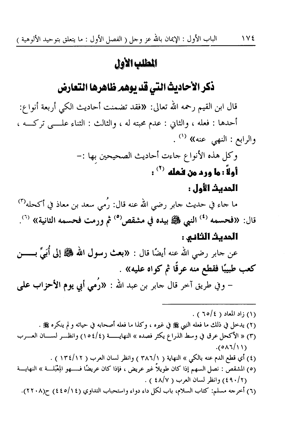 المطلب الأول ذكر الأحاديت التى قد يوهم ظاهرها التعارض