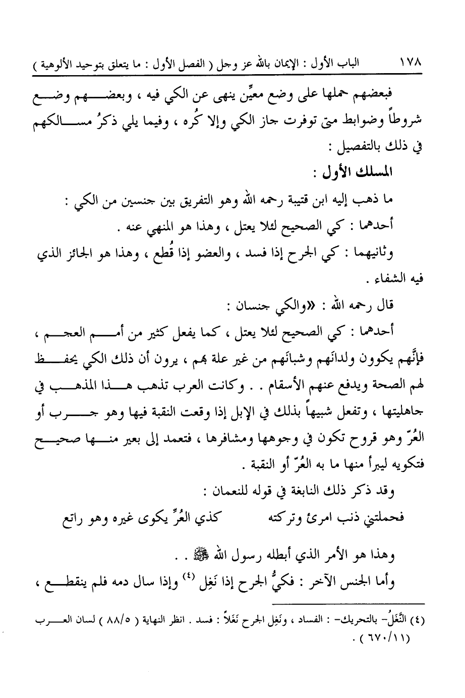ما ذهب إليه ابن قتيبة رحمه الله وهو التفريق بين جنسين من الكى: