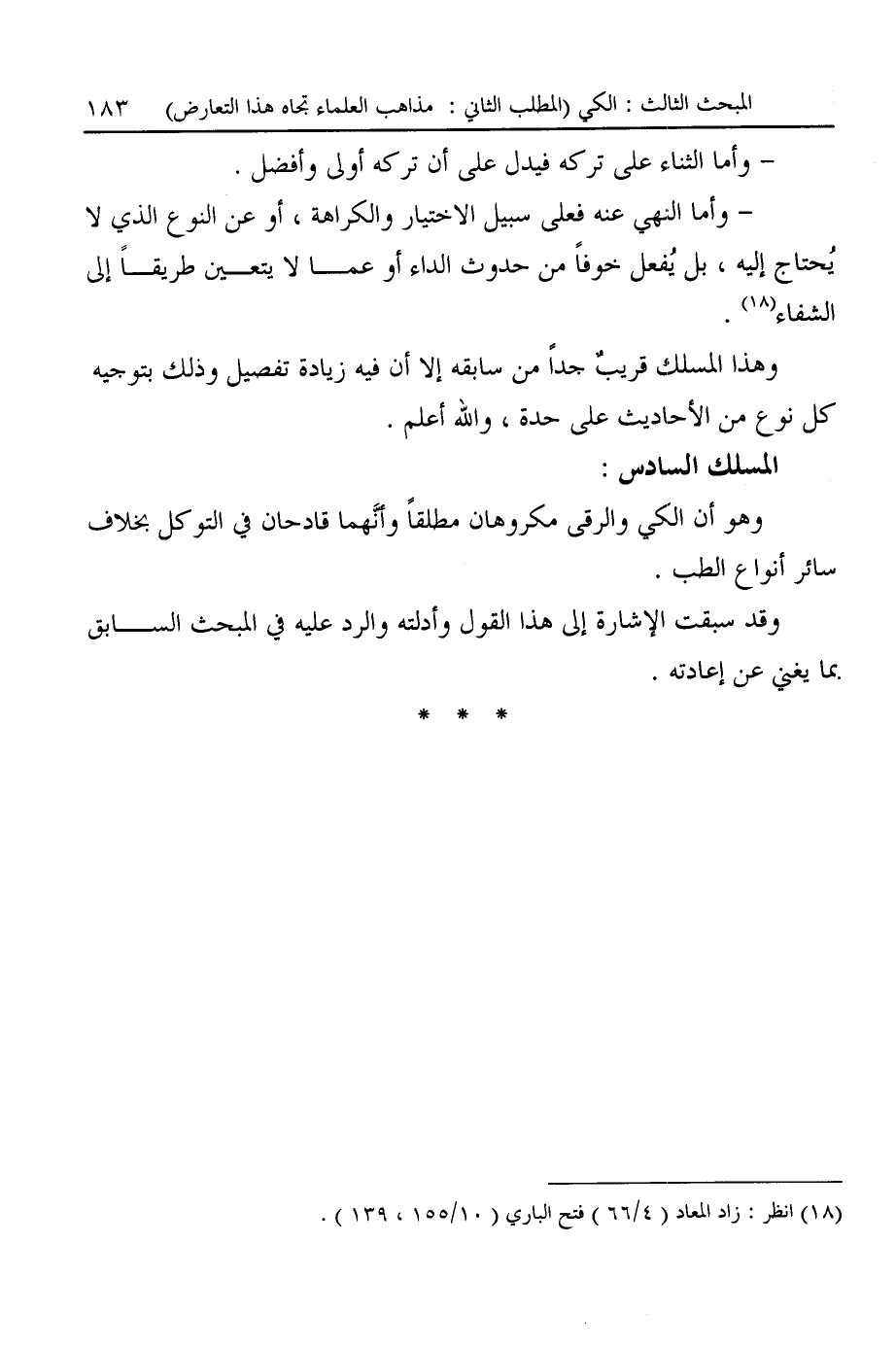 - وأما النهى عنه فعلى سبيل الاختيار والكراهة، أو عن النوع الذي لا يُحتاج إليه، بل يُفعل خوفًا من حدوث الداء أو عما لا يتعين طريقًا إلى الشفاء (¬١٨).