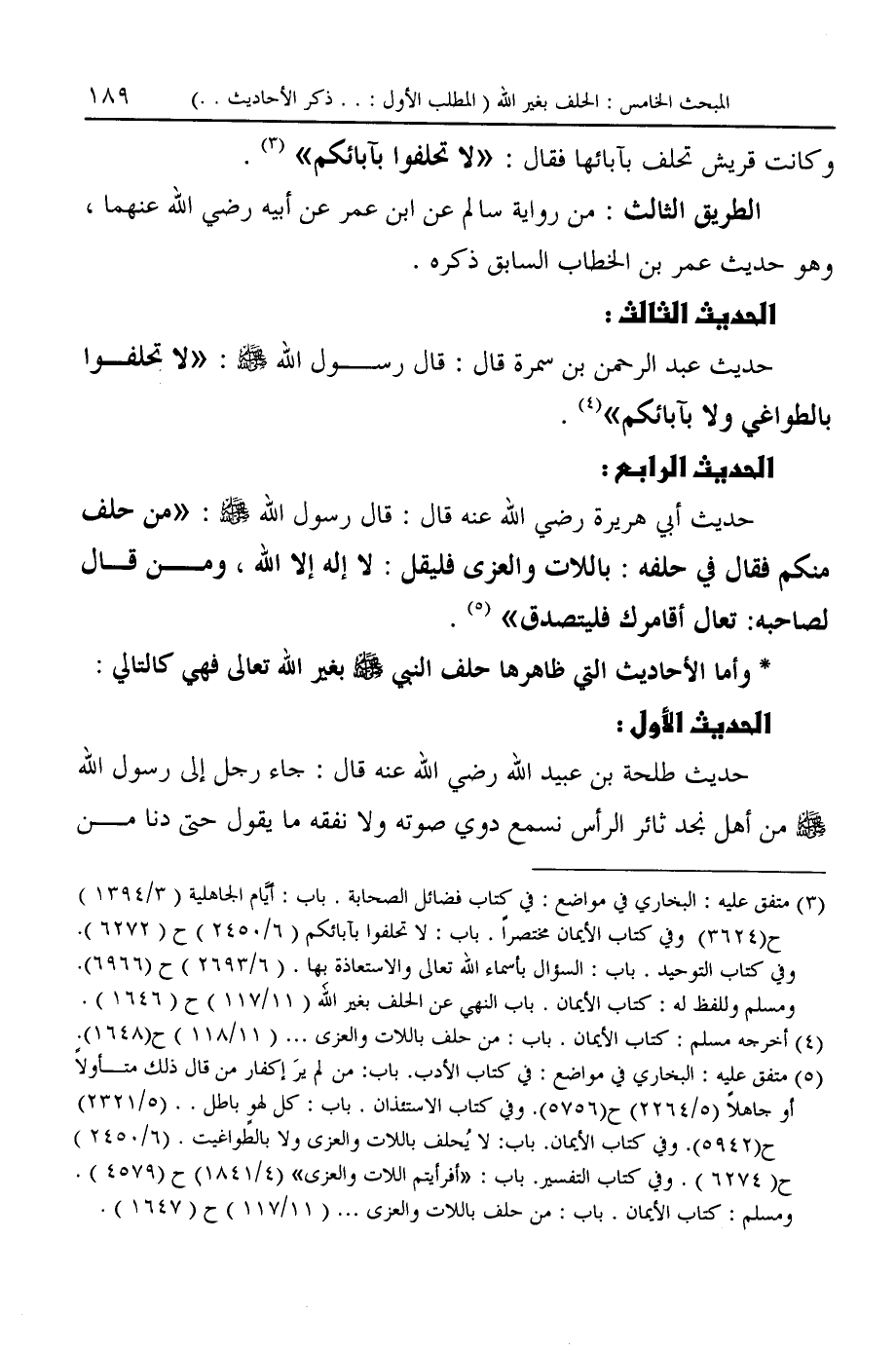 (¬٣) متفق عليه: البخاري في مواضع: في كتاب فضائل الصحابة. باب: أَيَّام الجاهلية (٣/ ١٣٩٤) ح (٣٦٢٤) وفي كتاب الأيمان مختصرًا. باب: لا تحلفوا بآبائكم (٦/ ٢٤٥٠) ح (٦٢٧٢). وفي كتاب التوحيد. باب: السؤال بأسماء الله تعالى والاستعاذة بها. (٦/ ٢٦٩٣) ح (٦٩٦٦). ومسلم واللفظ له: كتاب الأيمان. باب النهى عن الحلف بغير الله (١١/ ١١٧) ح (١٦٤٦).