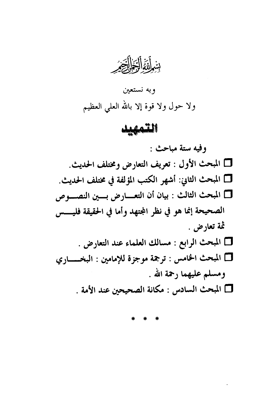 * المبحث الثالث: بيان أن التعارض بين النصوص الصحيحة إنما هو في نظر المجتهد وأما في الحقيقة فليس ثمة تعارض.