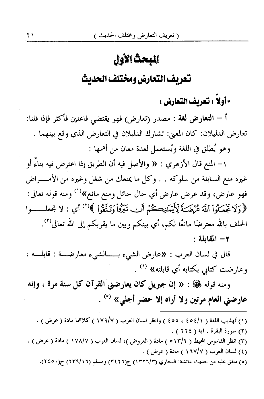 المبحث الأول تعريف التعارض ومختلف الحديث