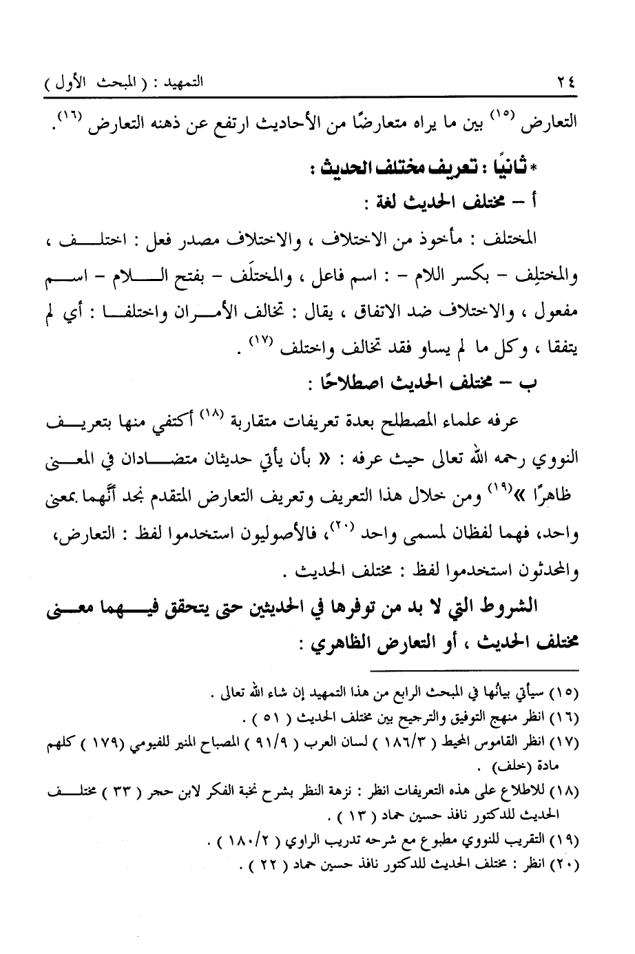 (¬١٦) انظر منهج التوفيق والترجيح بين مختلف الحديث (٥١).