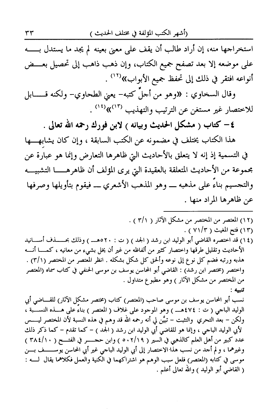 ٤ - كتاب (مشكل الحديث وبيانه) لابن فورك رحمه الله تعالى.