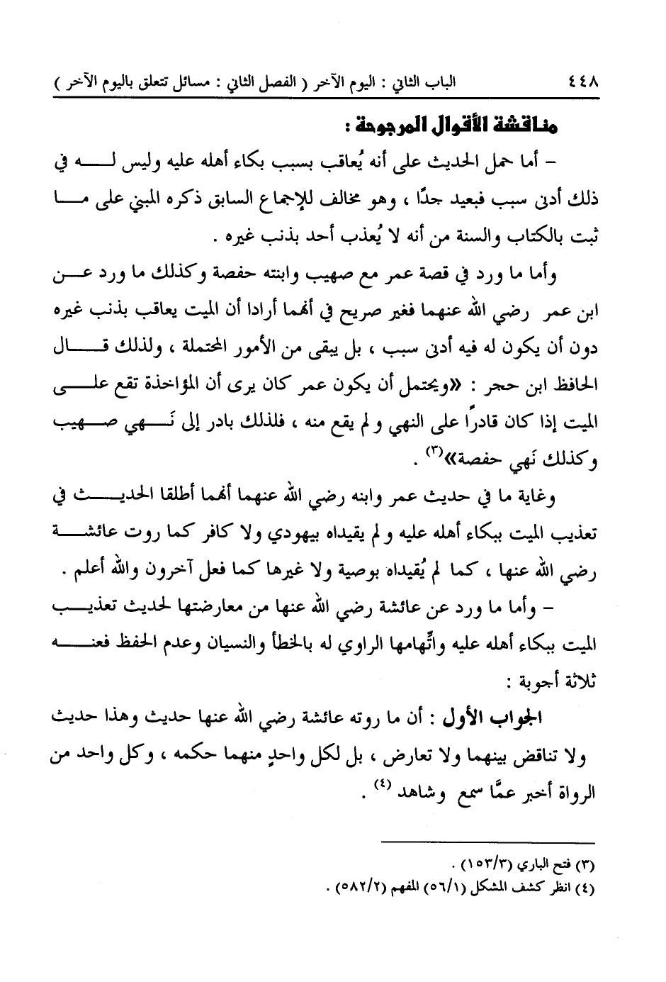 مناقشة الأقوال المرجوحة: