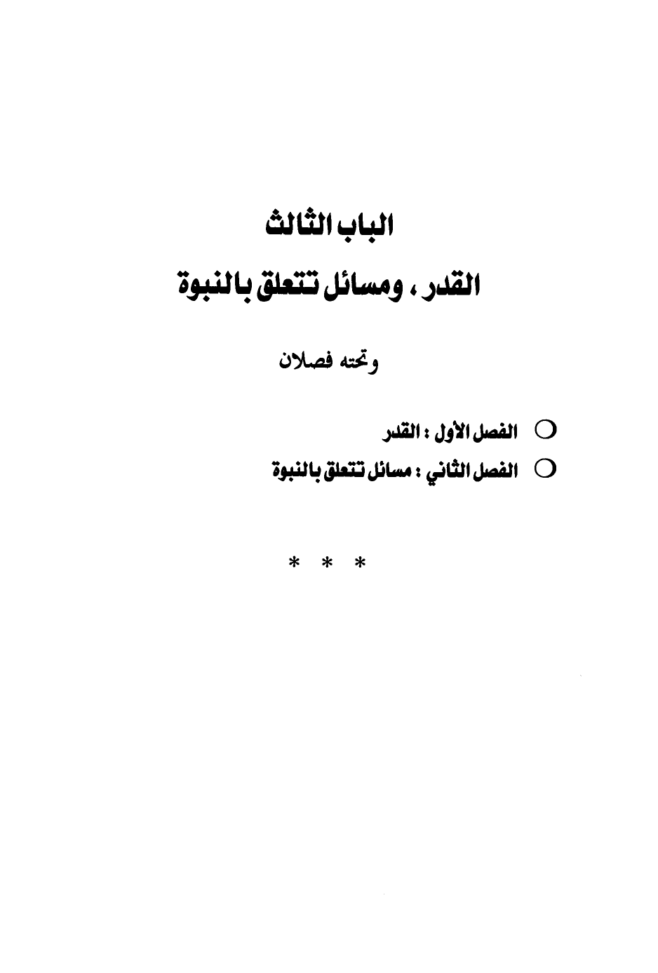 الباب الثالث القدر، ومسائل تتعلق بالنبوة