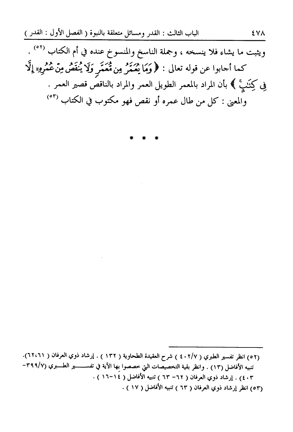 (¬٥٢) انظر تفسير الطبري (٧/ ٤٠٢) شرح العقيدة الطحاوية (١٣٢). إرشاد ذوى العرفان (٦١، ٦٢). تنبيه الأفاضل (١٣). وانظر بقية التخصيصات التي خصصوا بِها الآية في تفسير الطبرى (٧/ ٣٩٩ - ٤٠٣). إرشاد ذوى العرفان (٦٢ - ٦٣) تنبيه الأفاضل (١٤ - ١٦).