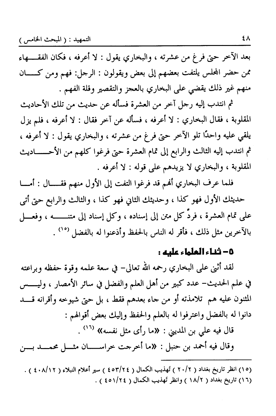 ٥ - ثناء العلماء عليه: