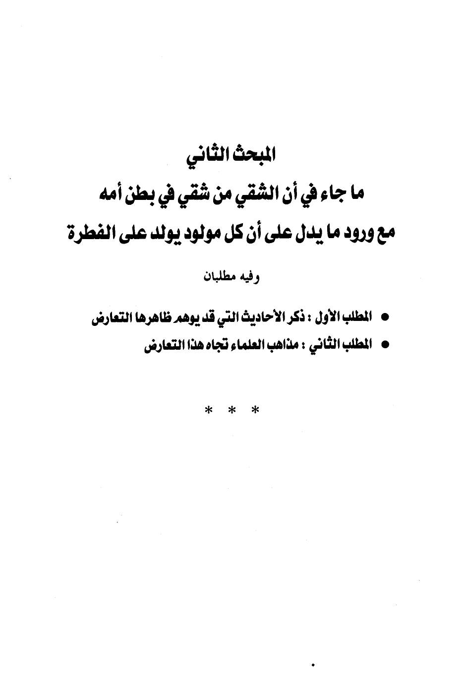 المبحث الثاني ما جاء في أن الشقي من شقي في بطن أمه مع ورود ما يدل على أن كل مولود يولد على الفطرة