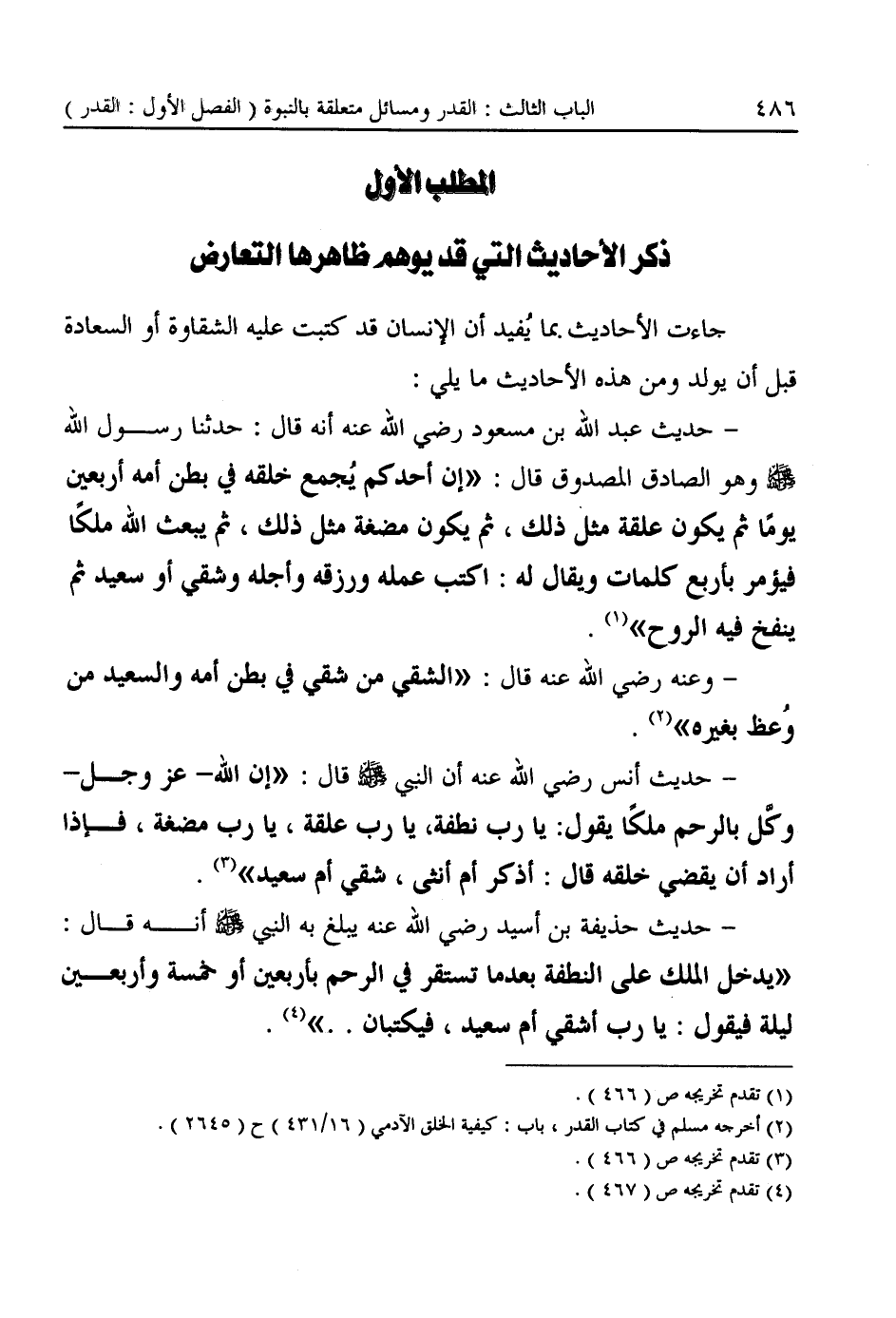 (¬٢) أخرحه مسلم في كتاب القدر، باب: كيفية الخلق الآدمى (١٦/ ٤٣١) ح (٢٦٤٥).