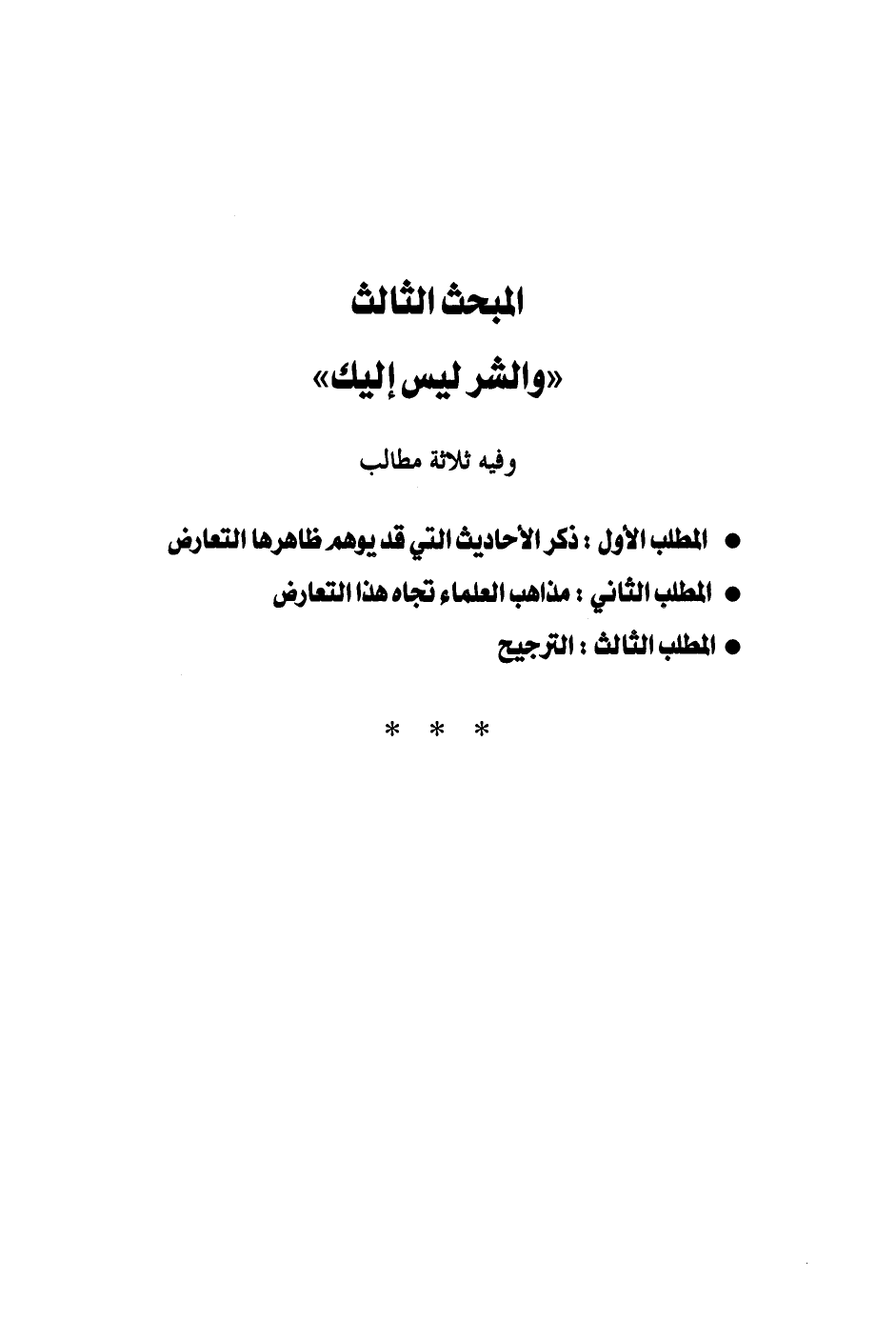 • المطلب الأول: ذكر الأحاديث التي قد يوهم ظاهرها التعارض