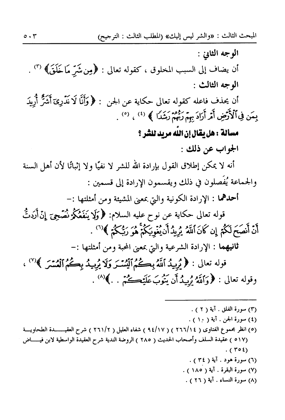 (¬٥) انظر مجموع الفتاوى (١٤/ ٢٦٦) (١٧/ ٩٤) شفاء العليل (٢/ ٢٦١) شرح العقيدة الطحاوية (٥١٧) عقيدة السلف وأصحاب الحديث (٢٨٥) الروضة الندية شرح العقيدة الواسطية لابن فياض (٣٥٤).