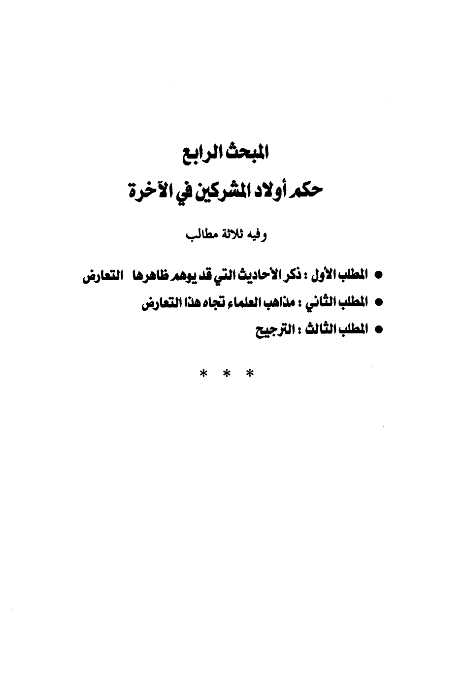 المبحث الرابع حكم أولاد المشركين في الآخرة