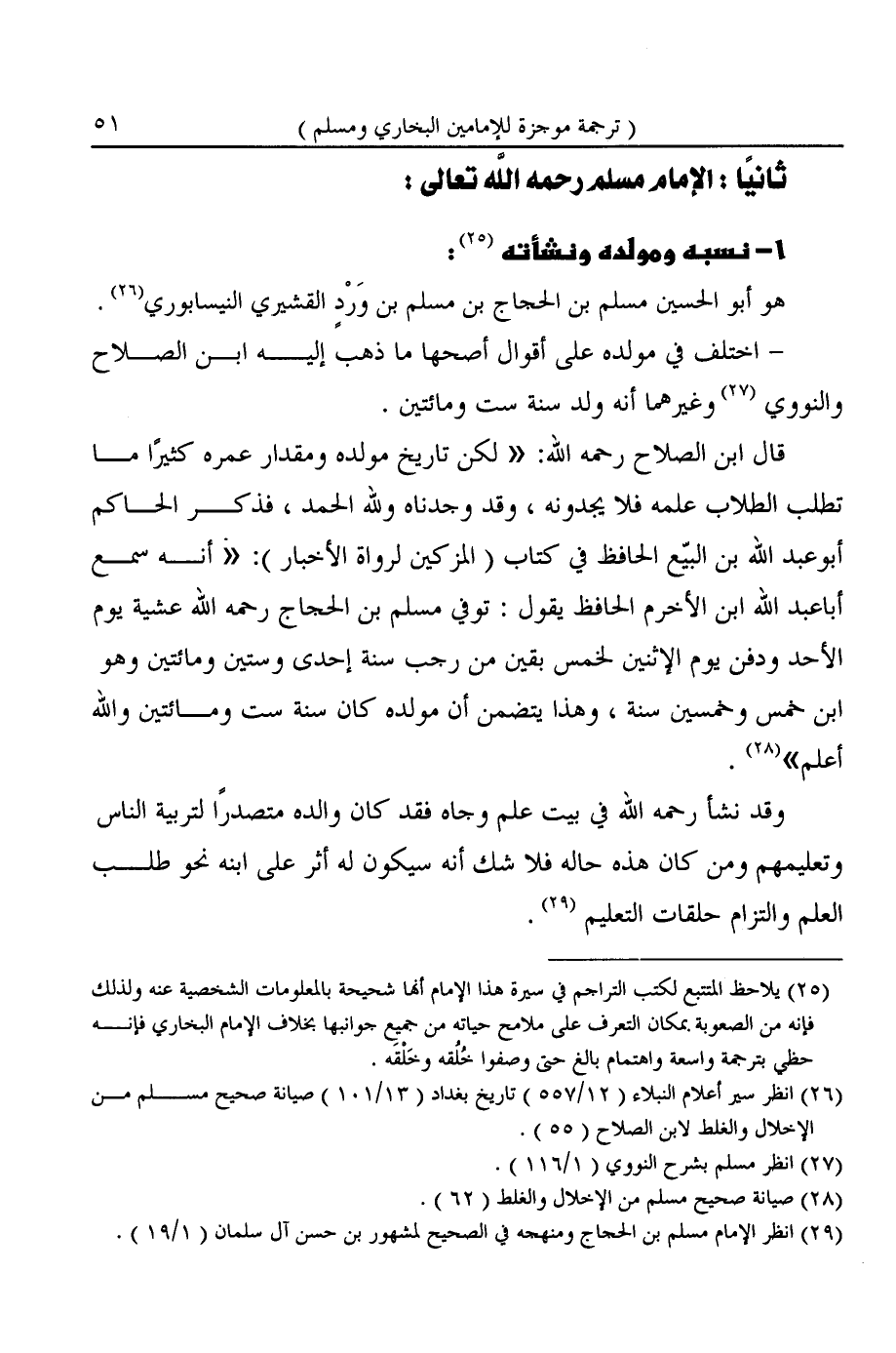 (¬٢٩) انظر الإمام مسلم بن الححاج ومنهجه في الصحيح لمشهور بن حسن آل سلمان (١/ ١٩).