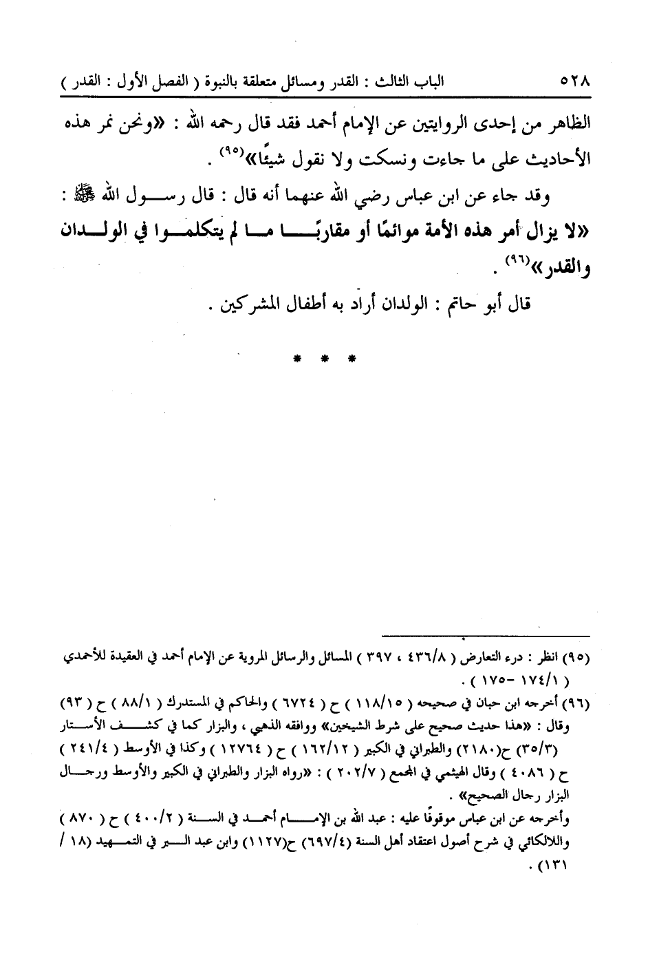 (¬٩٥) انظر: درء التعارض (٨/ ٤٣٦، ٣٩٧) المسائل والرسائل المروية عن الإمام أحمد في العقيدة للأحمدى (١/ ١٧٤ - ١٧٥).
