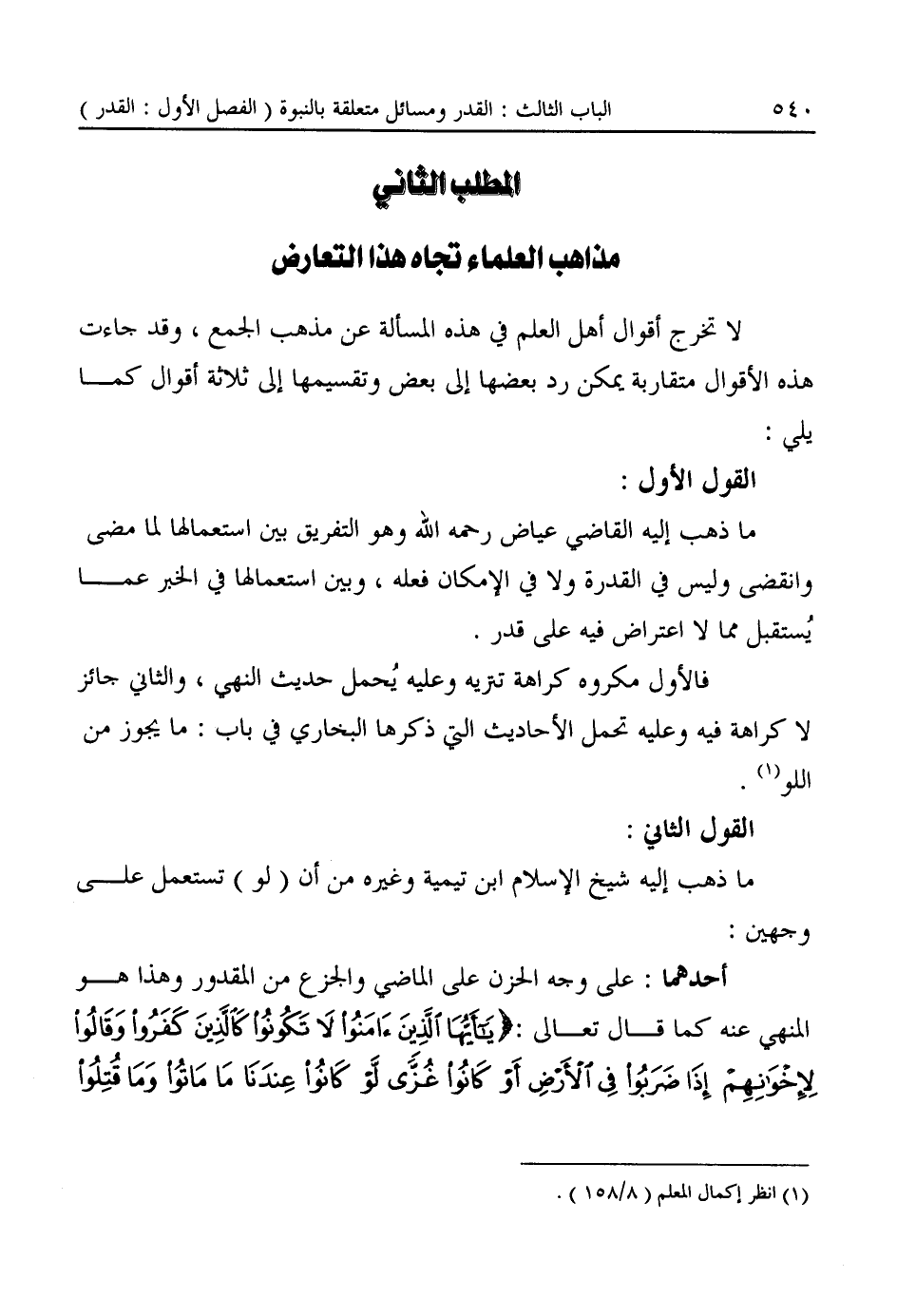 المطلب الثاني مذاهب العلماء تجاه هذا التعارض