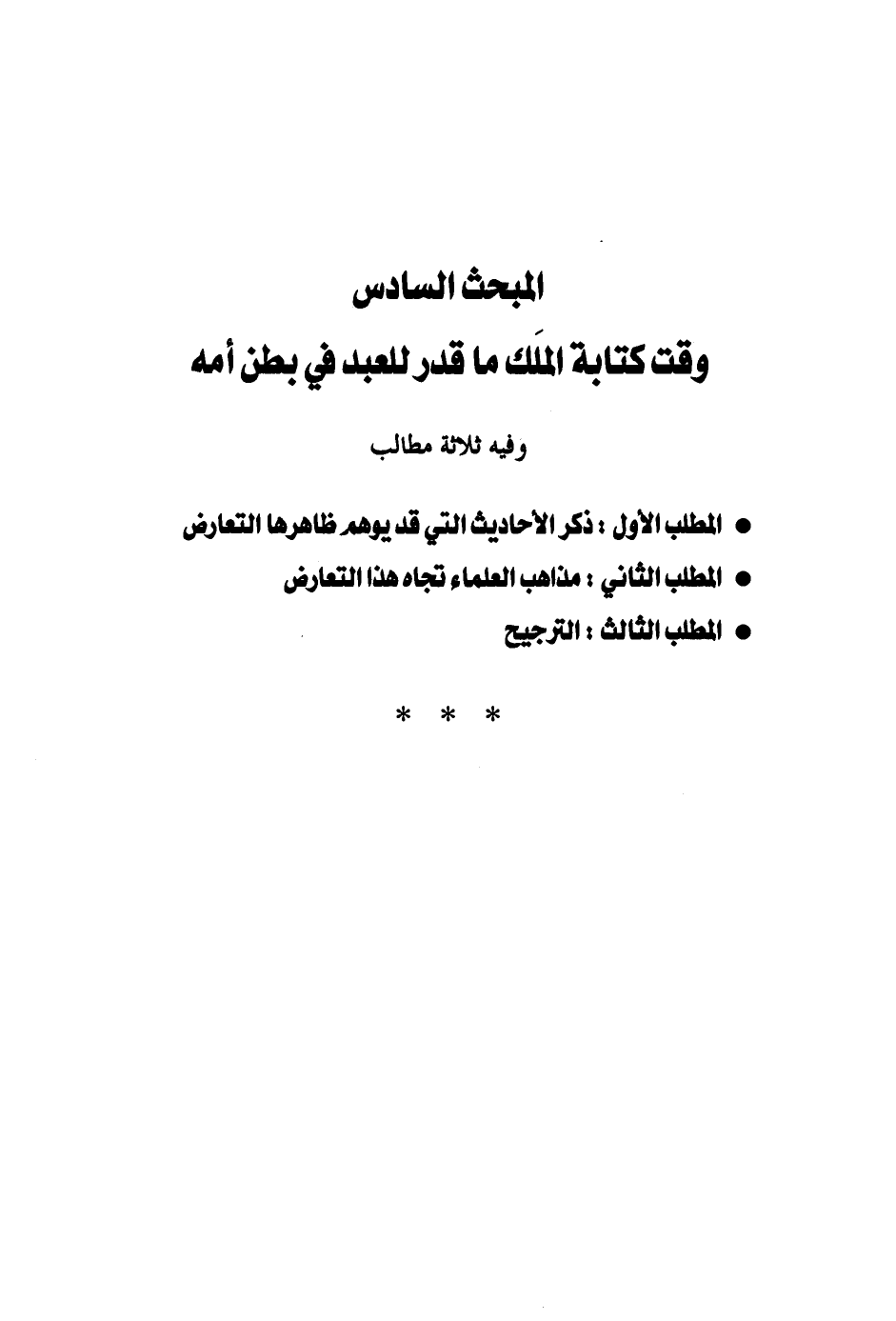 المبحث السادس وقت كتابة الملَك ما قدر للعبد في بطن أمه