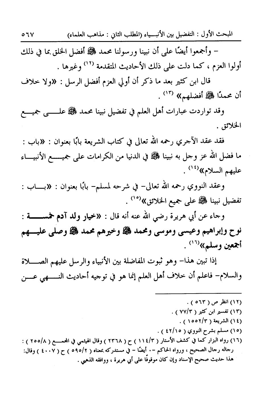 - وأجمعوا أيضًا على أن نبينا ورسولنا محمد -صَلَّى اللهُ عَلَيْهِ وَسَلَّمَ- أفضل الخلق بما في ذلك أولوا العزم، كما دلت على ذلك الأحاديث المتقدمة (¬١٢) وغيرها.