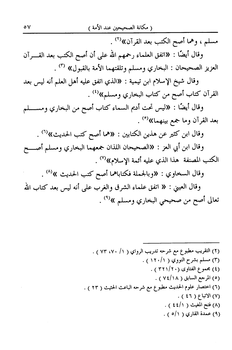 وقال أيضًا: "اتفق العلماء رحمهم الله على أن أصح الكتب بعد القرآن العزيز الصحيحان: البخاري ومسلم وتلقتهما الأمة بالقبول" (¬٣).