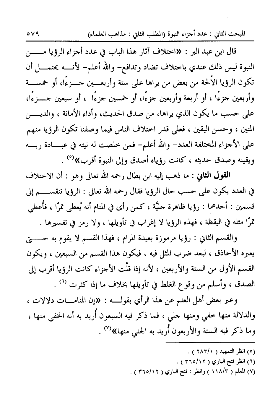 وعبر بعض أهل العلم عن هذا الرأي بقوله: "إن المنامات دلالات، والدلالة منها خفي ومنها جلي، فما ذكر فيه السبعون أُريد به أنه الخفي منها، وما ذكر فيه الستة والأربعون أُريد به الجلي منها" (¬٧).