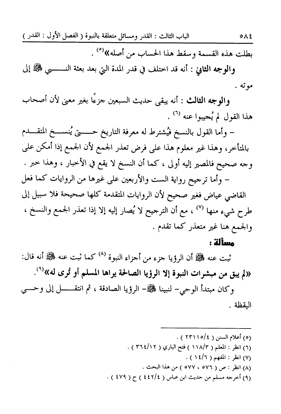 ثبت عنه -صَلَّى اللهُ عَلَيْهِ وَسَلَّمَ- أن الرؤيا جزء من أجزاء النبوة (¬٨) كما ثبت عنه -صَلَّى اللهُ عَلَيْهِ وَسَلَّمَ- أنه قال: "لم يبق من مبشرات النبوة إلا الرؤيا الصالحة يراها المسلم أو تُرى له" (¬٩).