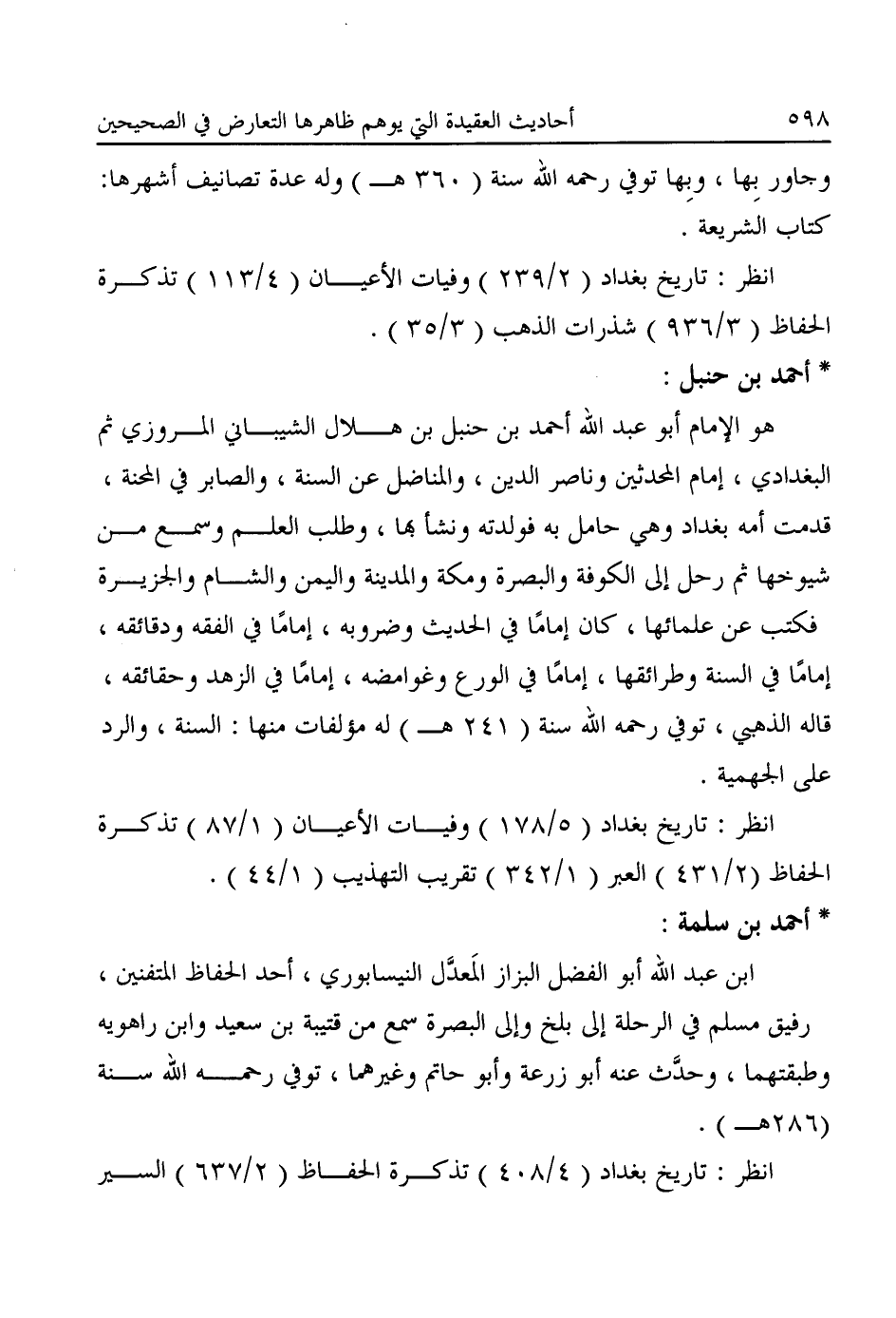 كتاب أحاديث العقيدة التي يوهم ظاهرها التعارض في الصحيحين دراسة وترجيح