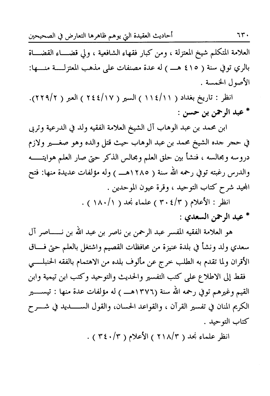 كتاب أحاديث العقيدة التي يوهم ظاهرها التعارض في الصحيحين دراسة وترجيح