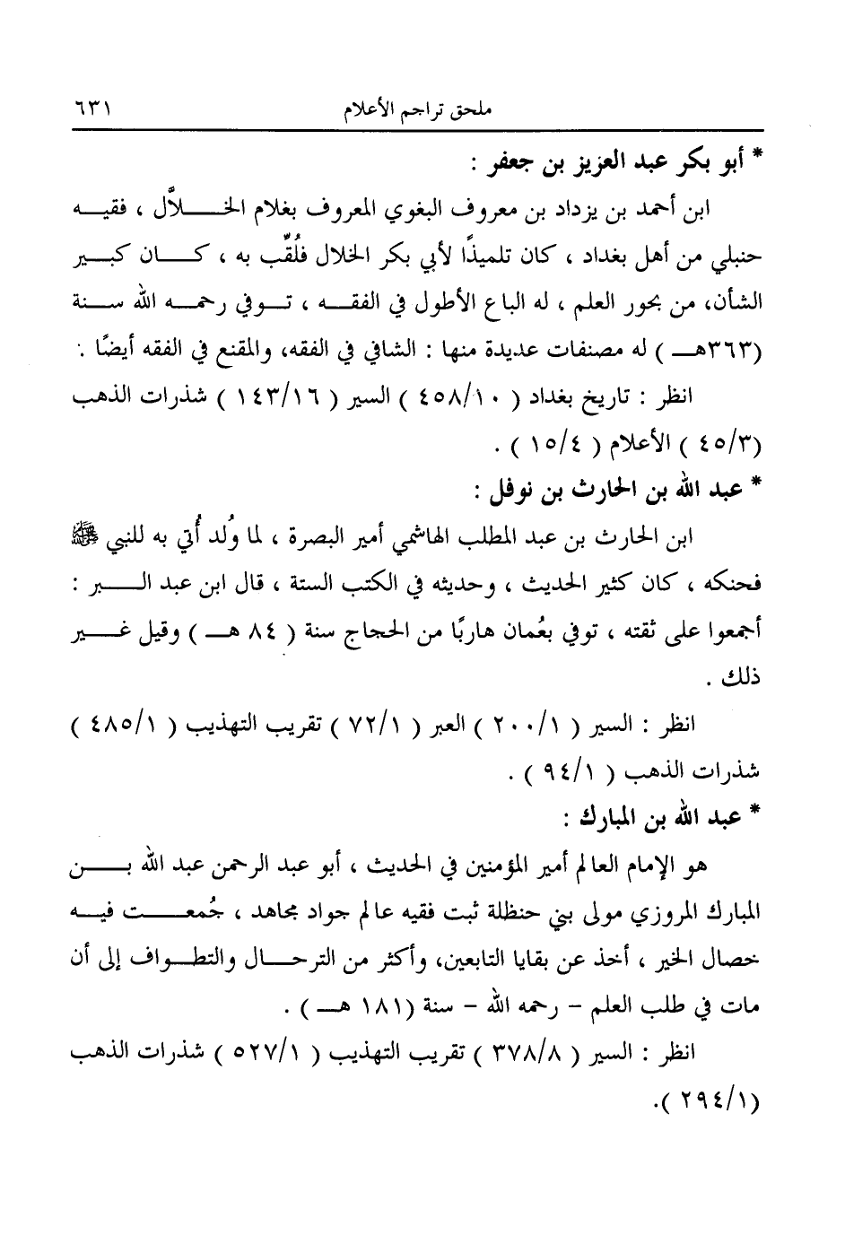 انظر: تاريخ بغداد (١٠/ ٤٥٨) السير (١٦/ ١٤٣) شذرات الذهب (٣/ ٤٥) الأعلام (٤/ ١٥).