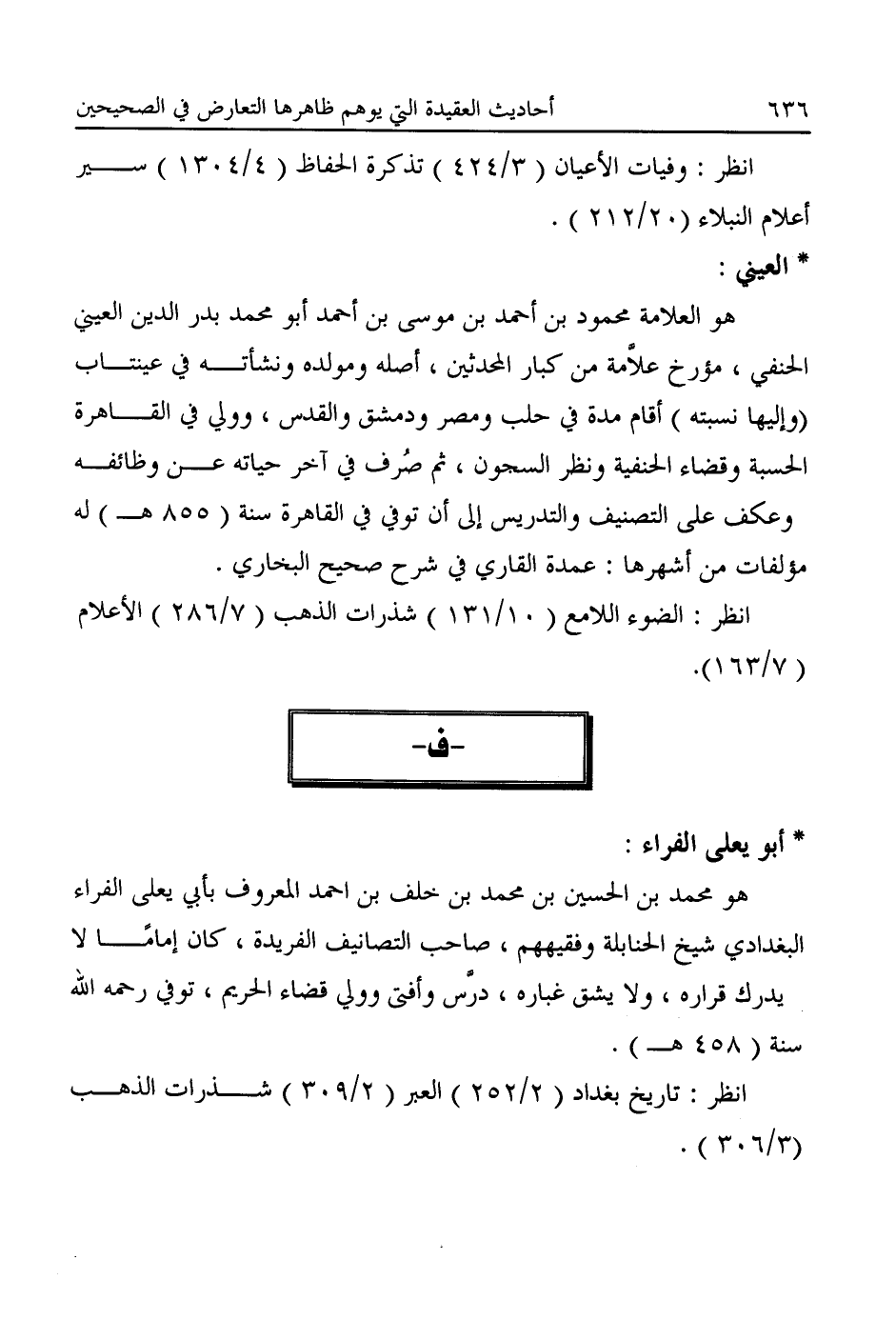 هو محمد بن الحسين بن محمد بن خلف بن أحمد المعروف بأبي يعلى الفراء البغدادي شيخ الحنابلة وفقيههم، صاحب التصانيف الفريدة، كان إمامًا لا يدرك قراره، ولا يشق غباره، درَّس وأفتى وولي قضاء الحريم، توفي رحمه الله سنة (٤٥٨ هـ).
