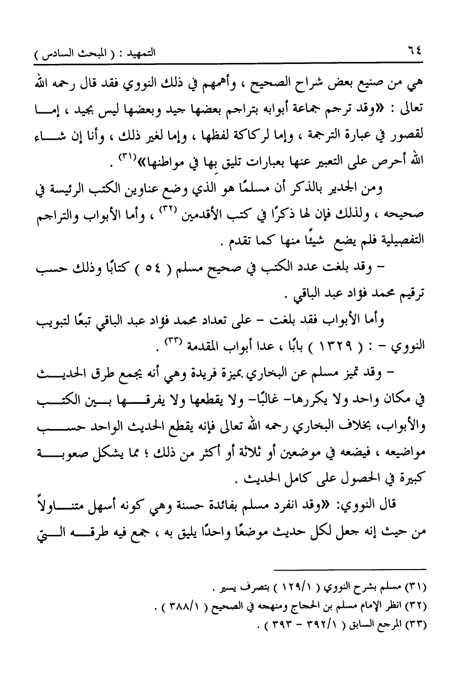 وأما الأبواب فقد بلغت -على تعداد محمد فؤاد عبد الباقي تبعًا لتبويب النووي-: (١٣٢٩) بابًا، عدا أبواب المقدمة (¬٣٣).