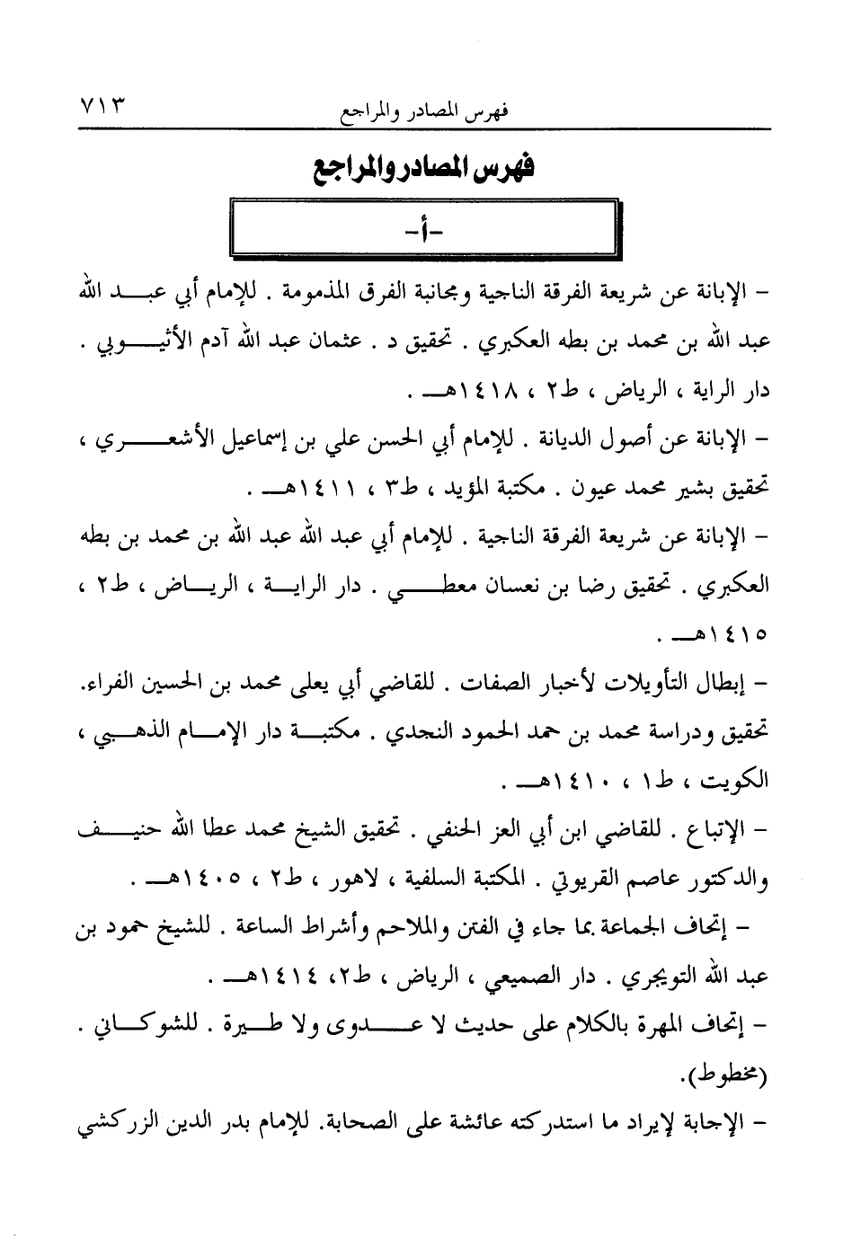 - الإبانة عن شريعة الفرقة الناجية ومجانبة الفرق المذمومة. للإمام أبي عبد الله عبد الله بن محمد بن بطه العكبري. تحقيق د. عثمان عبد الله آدم الأثيوبي. دار الراية، الرياض، ط ٢، ١٤١٨ هـ.