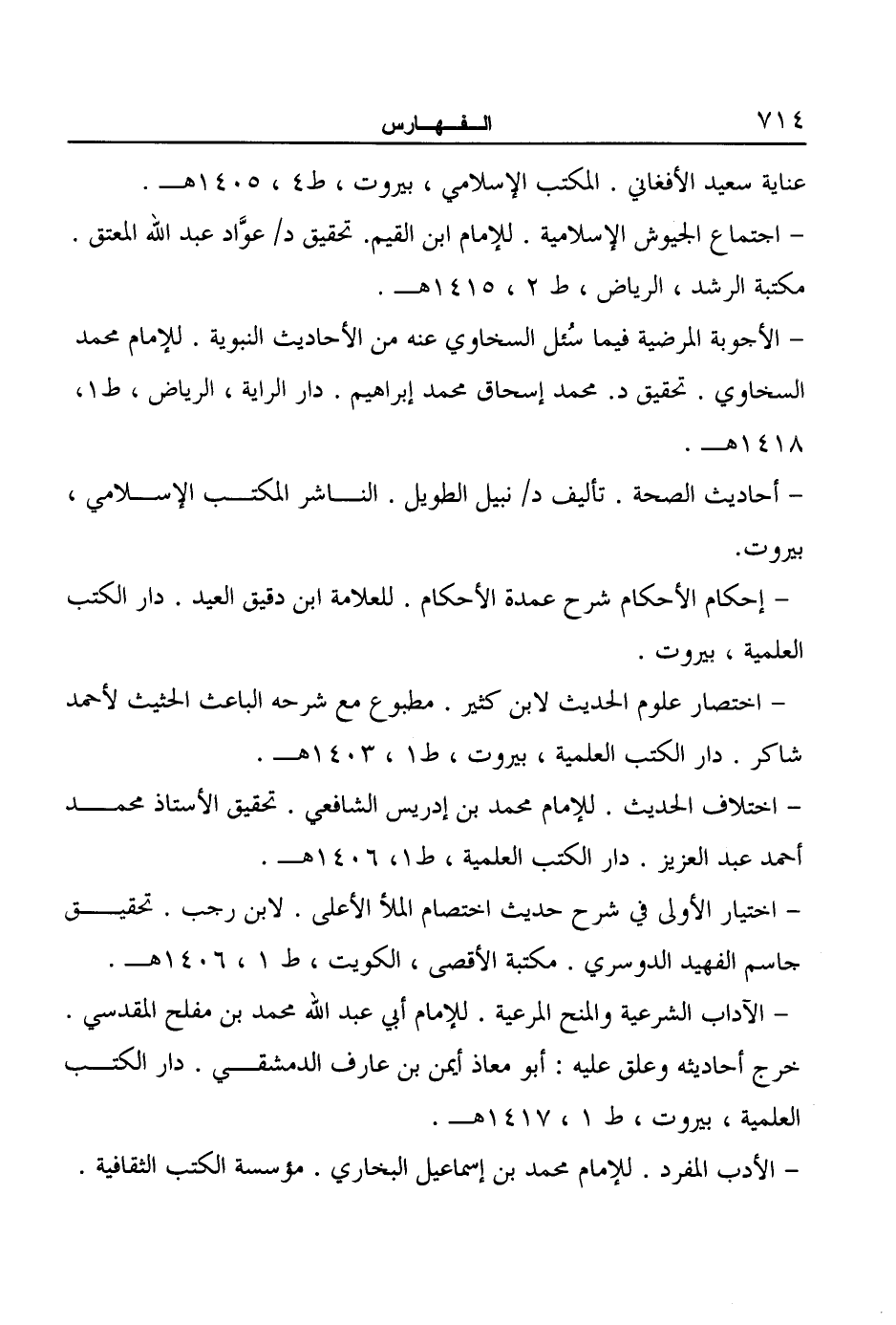 - الآداب الشرعية والمنح المرعية. للإمام أبي عبد الله محمد بن مفلح المقدسى. خرج أحاديثه وعلق عليه: أبو معاذ أيمن بن عارف الدمشقي. دار الكتب العلمية، بيروت، ط ١، ١٤١٧ هـ.