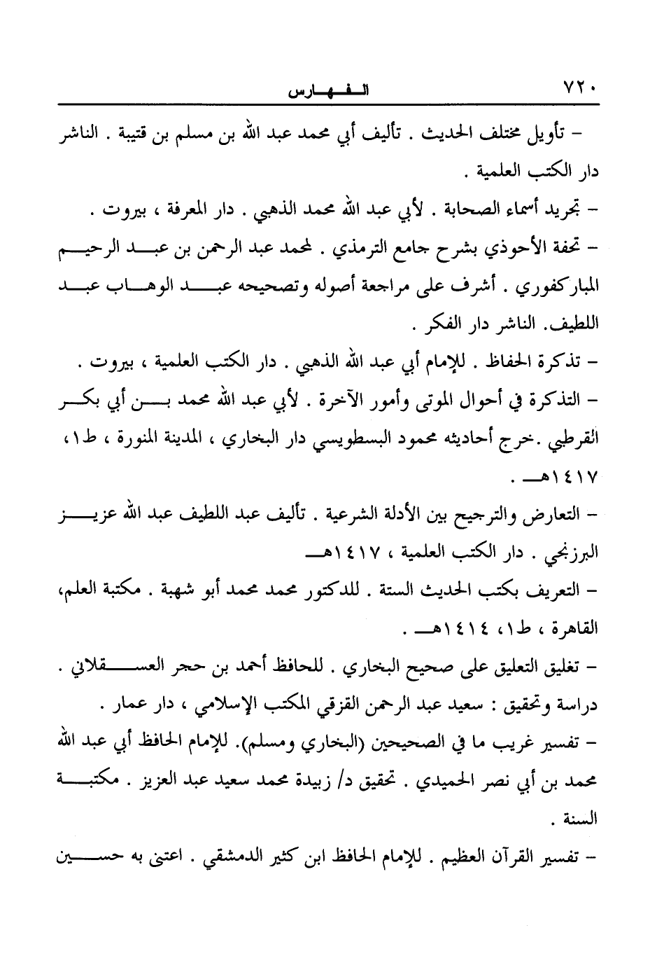 - تفسير غريب ما في الصحيحين (البخاري ومسلم). للإمام الحافظ أبي عبد الله محمد بن أبي نصر الحميدي. تحقيق د/ زبيدة محمد سعيد عبد العزيز. مكتبة السنة.
