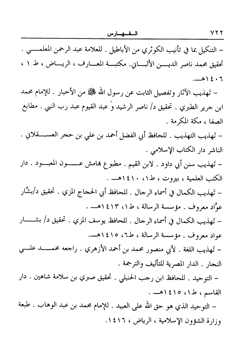- التوحيد. للحافظ ابن رجب الحنبلي. تحقيق صبري بن سلامة شاهين. دار القاسم، ط ١، ١٤١٥ هـ.