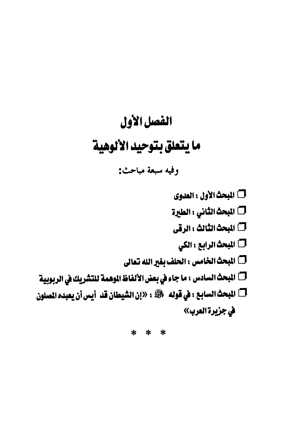الفصل الأول ما يتعلق بتوحيد الألوهية