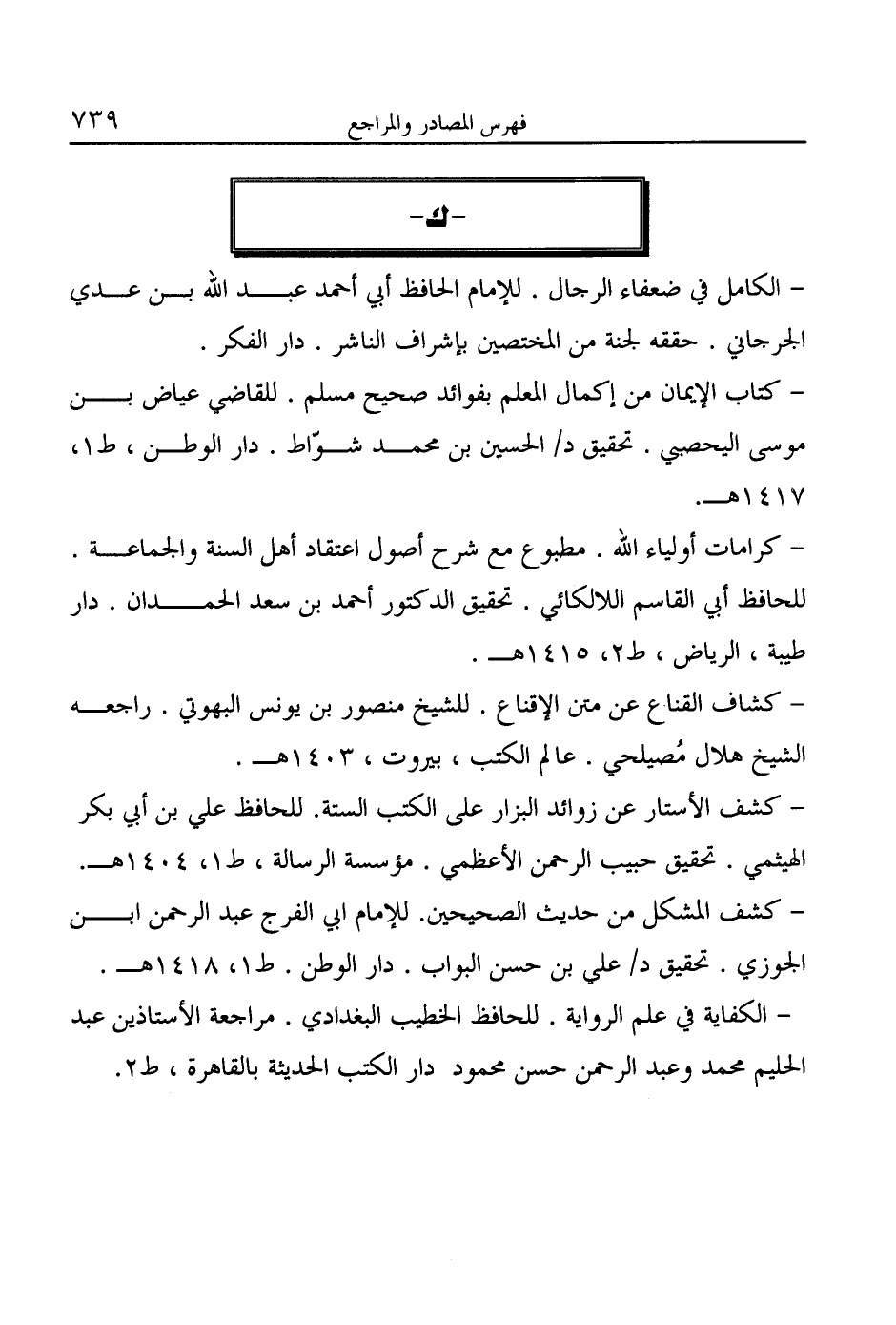 - الكامل في ضعفاء الرجال. للإمام الحافظ أبي أحمد عبد الله بن عدي الجرجاني. حققه لجنة من المختصين بإشراف الناشر. دار الفكر.