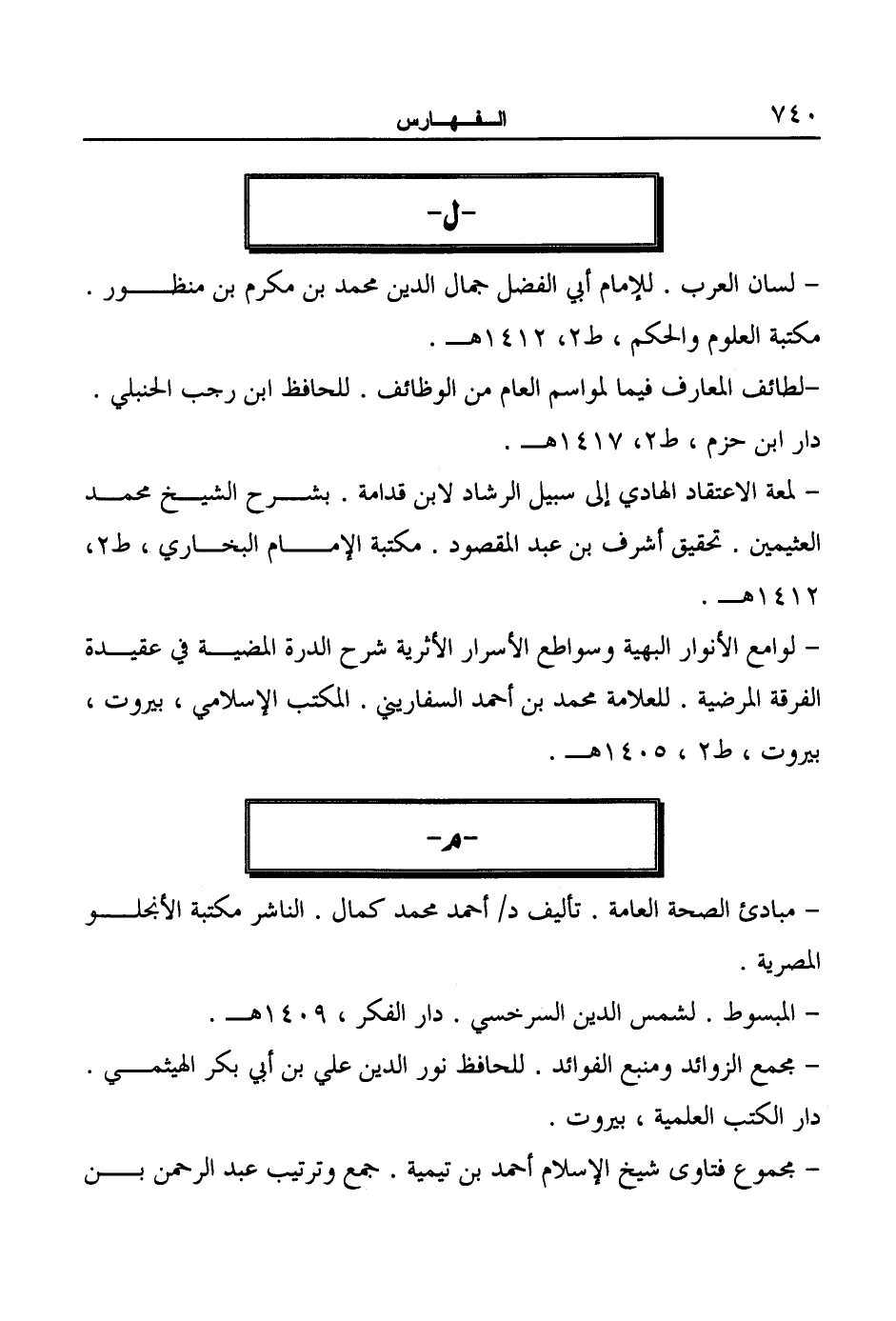 - لسان العرب. للإمام أبي الفضل جمال الدين محمد بن مكرم بن منظور. مكتبة العلوم والحكم، ط ٢، ١٤١٢ هـ.
