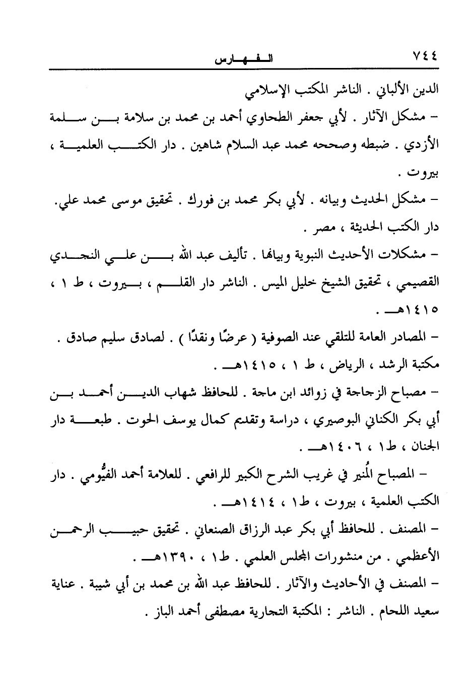 - المصنف في الأحاديث والآثار. للحافظ عبد الله بن محمد بن أبي شيبة. عناية سعيد اللحام. الناشر: المكتبة التجارية مصطفى أحمد الباز.