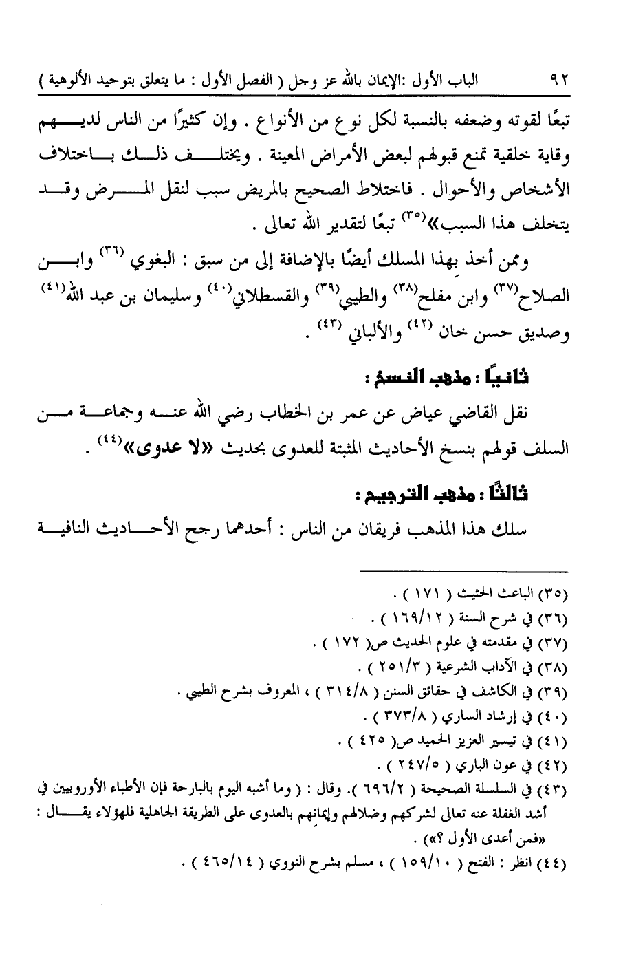 (¬٤٣) في السلسلة الصحيحة (٢/ ٦٩٦). وقال: (وما أشبه اليوم بالبارحة فإن الأطباء الأوروبيين في أشد الغفلة عنه تعالى لشركهم وضلالهم وإيمانهم بالعدوى على الطريقة الجاهلية فلهؤلاء يقال: "فمن أعدى الأول؟ ").
