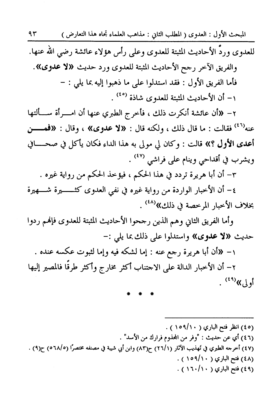 والفريق الآخر رجح الأحاديث المثبتة للعدوى ورد حديث "لا عدوى".